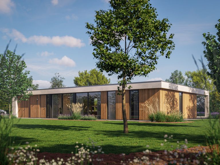 Alles is gelijkvloers ontworpen. Daarmee geniet je van een levensloopbestendige basis met een luxe uitstraling. Wie meer ruimte verlangt, kiest voor de subtiele opbouw op de verdieping. Dankzij de zogenoemde ‘set-back’ ligt de opbouw elegant bovenop het volume en krijgt de omgeving alle aandacht. Hier kunnen twee extra slaapkamers en een badkamer worden toegevoegd. Het resultaat is een hedendaagse woning, waarin binnen en buiten naadloos samenkomen.